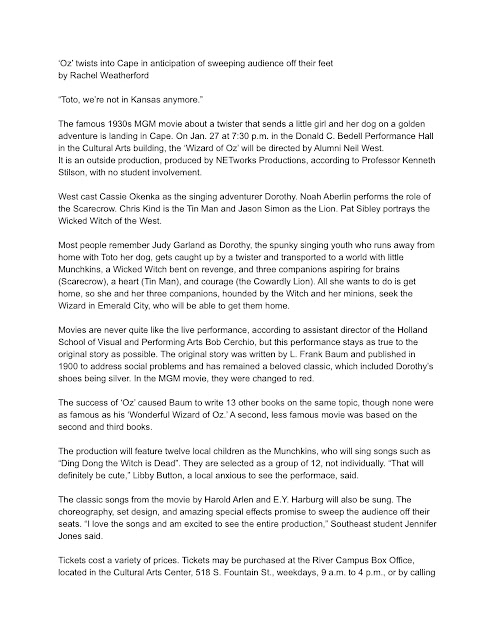If you are interested, please take a moment to view the rest of my digital portfolio. Inside will include links to published newspaper and magazine articles, links to radio scripts that were aired on KRCU, the NPR affiliate for Southeast Missouri, links to my own original creative photos, links to published original creative works, and many other clips demonstrating my ability to research topics, interview individuals, investigate newsworthy information, create, lead, manage, and organize myself and other individuals.
